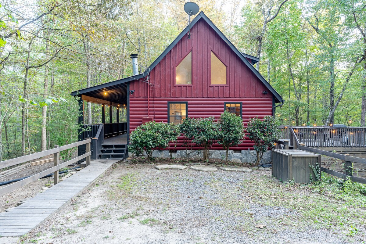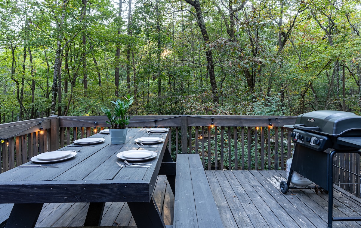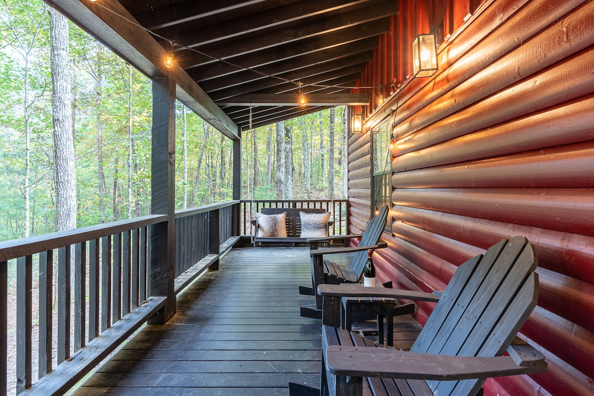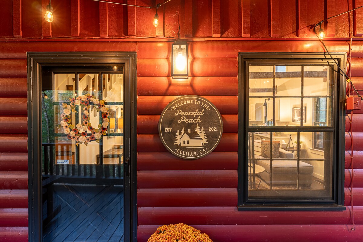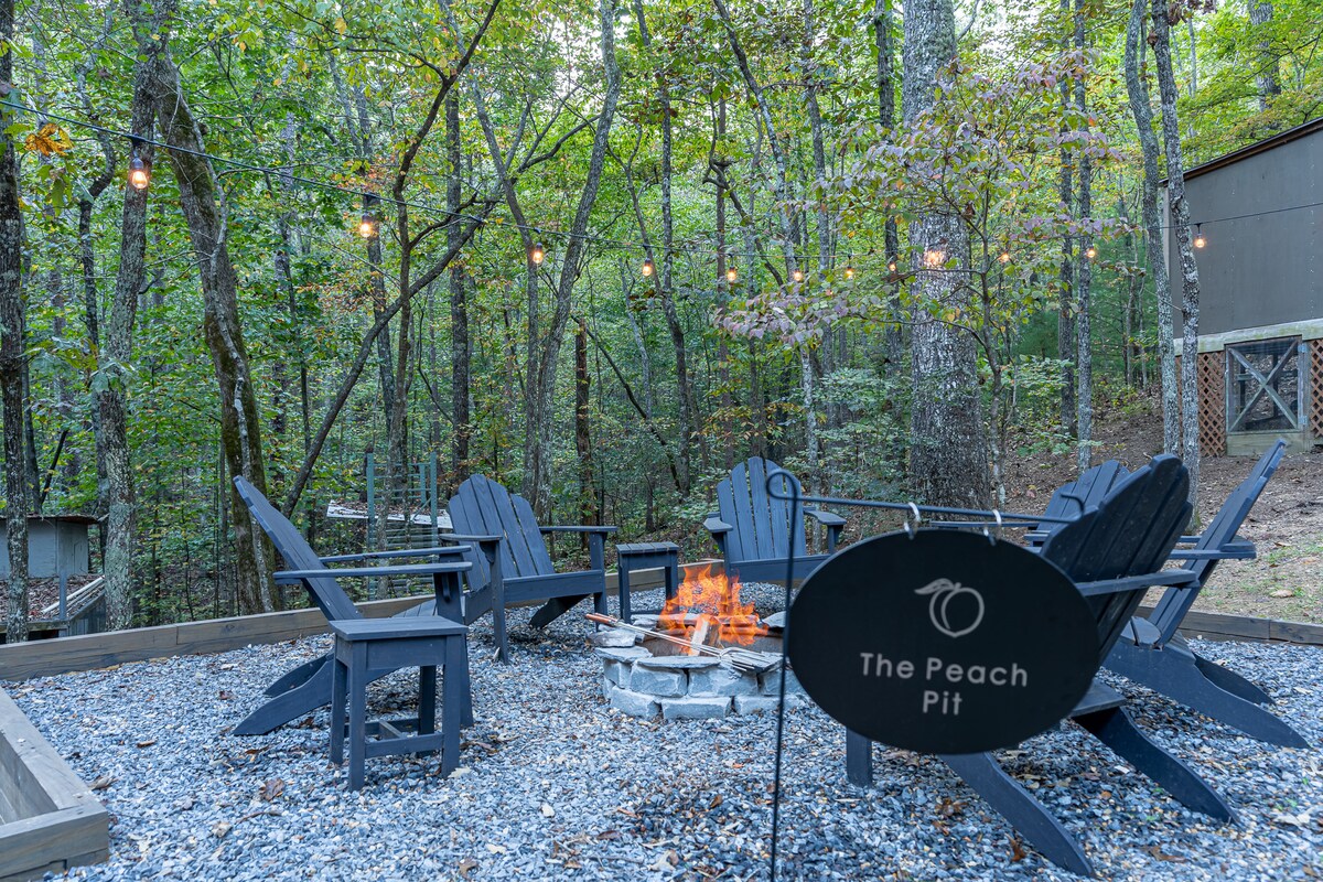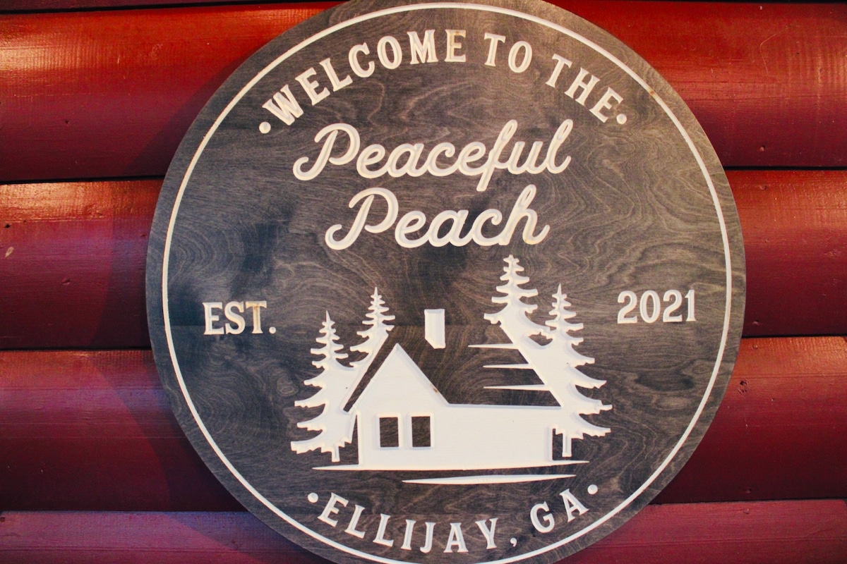 EllijayThe Peaceful Peach: a dreamy, secluded cabin nestled in the woods of the North GA mountains. 5min to Dwtn Ellijay & 15min to Dwtn Blue Ridge. A long downhill dirt road driveway leads you to your private wooded oasis. Start your day with a hot coffee on the front porch, cook together in our fully equipped kitchen, BBQ, make s'mores by the fire pit, stargaze in the hot tub, cozy up by the fireplace & watch a movie after a long day of activities. Comfortably sleeps 6 ♡Perfect for families & couples