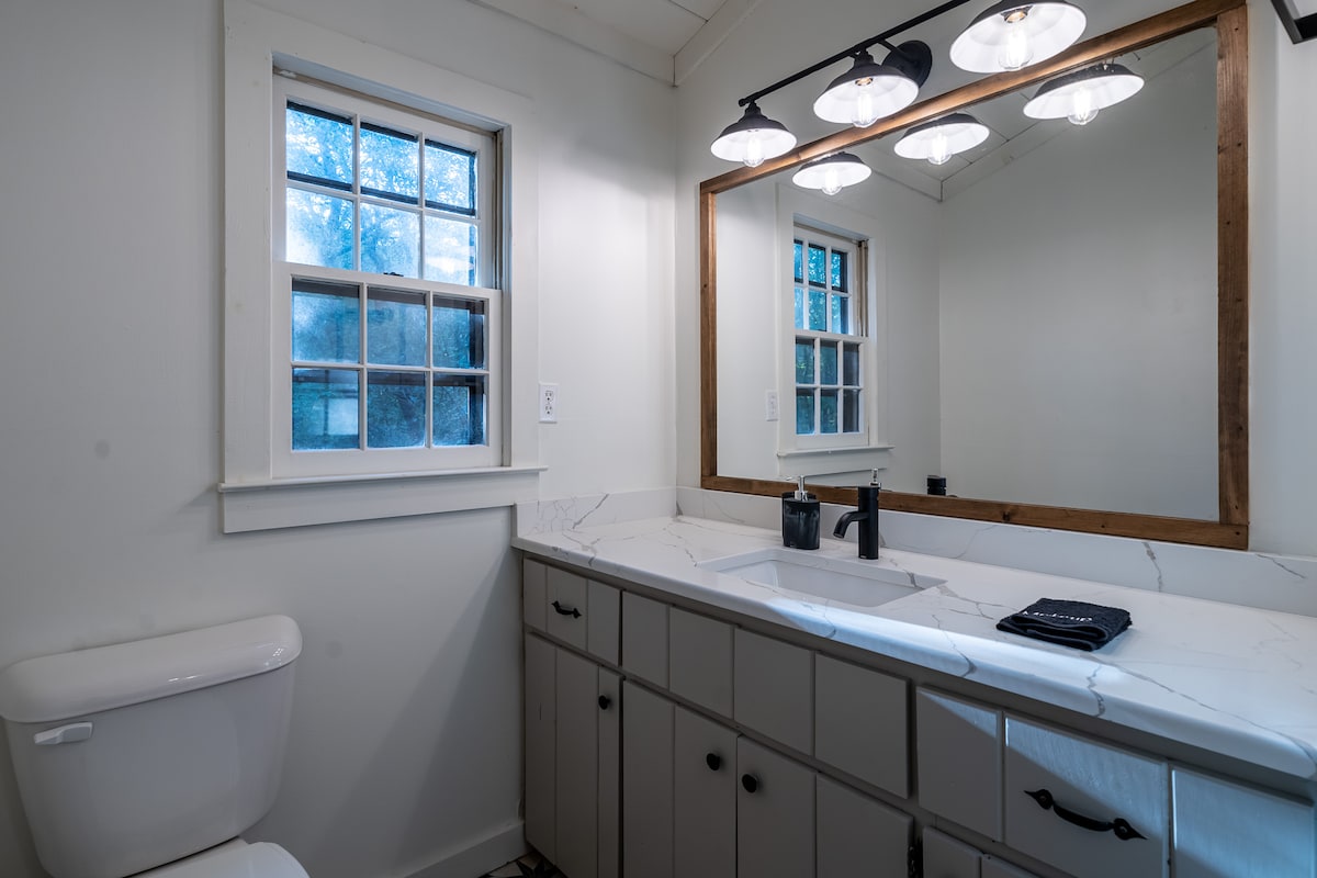 Only human waste and toilet paper to be flushed in toilets. House is on a delicate septic system.